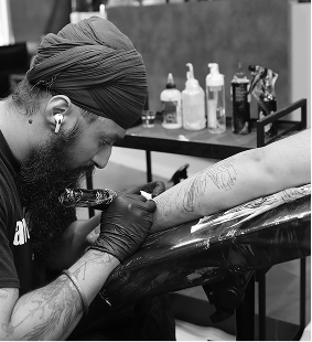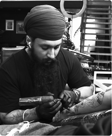 Harmeet Singh, known as Hardwork Singh, is Canada’s first Sikh professional tattoo artist and the visionary behind Hardwork Tattoos. Originally from New Delhi, India, Harmeet started tattooing with the mission to bring Punjabi artistry into the global tattoo industry. Since 2016, his expertise in photo-realistic, black-and-grey, and cultural tattoos has made him a leading name in the Canadian tattoo community. His portfolio includes work for public figures and artists, showcasing creativity, precision, and pride in every stroke.