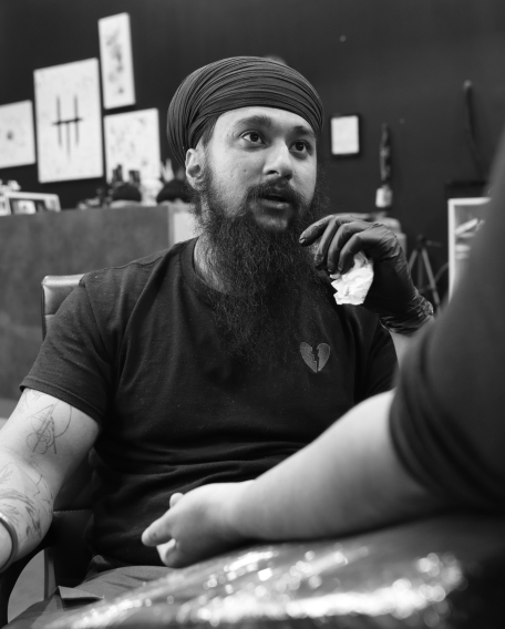 With Ghuman, we sensed a quiet acceptance. He did not seem nervous or overwhelmed. He seemed ready. Ready for the story he admired to become part of his body. Ready to commit to the discipline the symbol represented. Ready to carry a physical reminder of his own dedication.