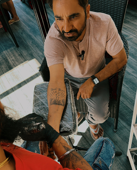 As Harmeet began tattooing the book, the room became quiet. Tattoos symbolize many things, but tattoos about knowledge carry a kind of purity. They represent the part of a person that evolves continuously. The part that grows through reading, listening, and thinking.
