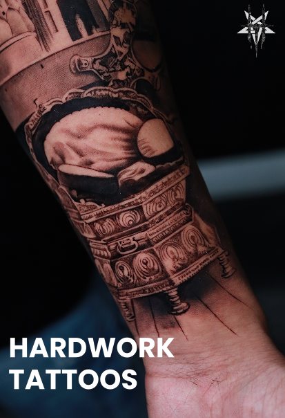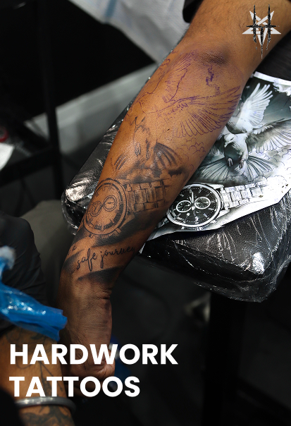 Full arm tattoo cost at Hardwork Tattoos varies by artist skill, detail level, number of sessions, design complexity, and coverage. Average full sleeves range from $1500 to $4500+ depending on realistic detail, color use, and time required.