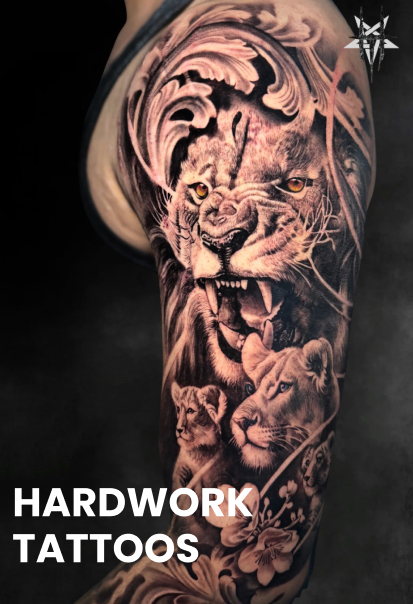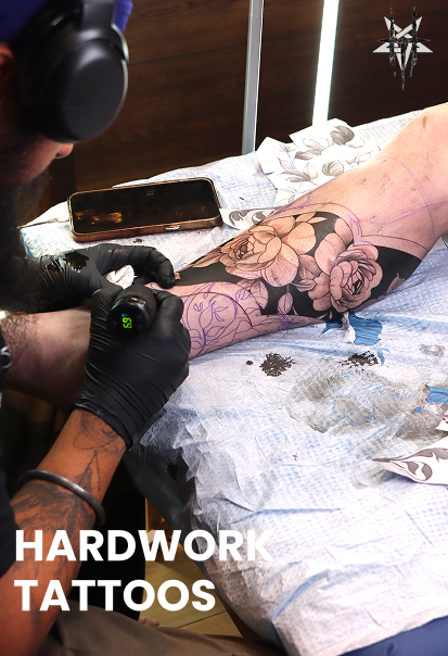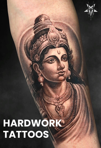 Motif-specific sculpture tattoos create unique meanings based on facial focus, head structure, gender expression, or thematic phrase placement. Face-only tattoos represent identity and introspection. Head-only tattoos represent thinking, intellect, and divine connection. Female sculptures represent beauty, grace, and mythological allure. The “World Is Yours” motif represents ambition and self-belief. Hardwork Tattoos works closely with clients to match each motif with personal meaning.