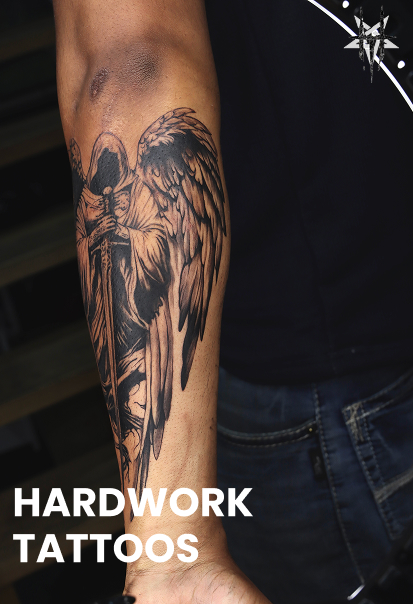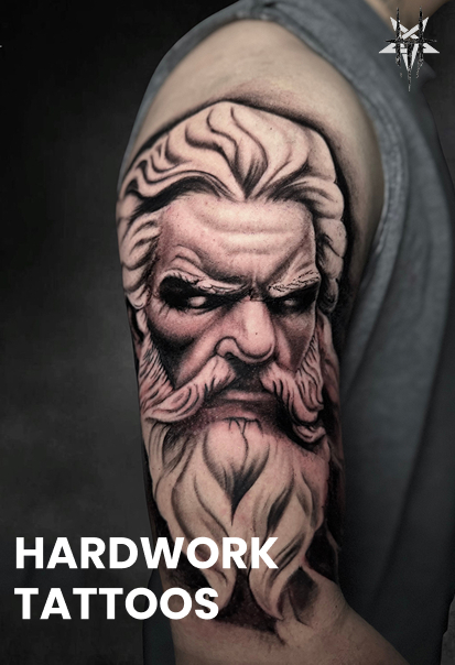 Sculpture tattoos represent strength, philosophy, spirituality, resilience, and classical identity in a visually powerful format. Many clients choose sculpture tattoos to express personal values through carved faces, stone fragments, or full-bodied figures. Artists at Hardwork Tattoos interpret each statue through clean proportions and detailed shading. Many people see Greek busts as symbols of wisdom or divine protection, while others view Roman figures as signs of leadership and stoic confidence. Angel sculptures create associations with spiritual guidance and emotional healing. Broken sculptures show the story of survival and recovery. Sculpture tattoos often attract clients who appreciate museum art, mythology, or old-world aesthetics.