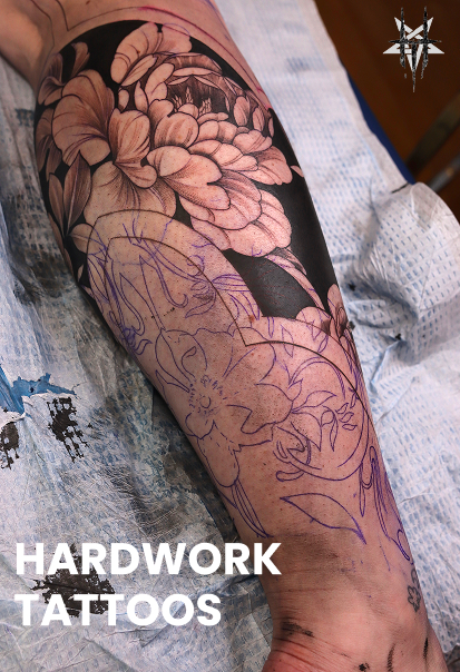 Artists at Hardwork Tattoos design statue tattoos with realism, grayscale depth, stone textures, and structured composition. Each design begins with a custom reference sketch followed by shadow mapping and texture planning. Artists focus on strong light direction to highlight carved surfaces and facial contours. Clients usually prefer heavy grayscale tattoos that mimic natural stone patterns. Fine-line designs appeal to clients who want clean and modern aesthetics. Custom stencils also help with proportion accuracy. Below is a tabular representation of the artistic techniques used in Sculpture tattoos.